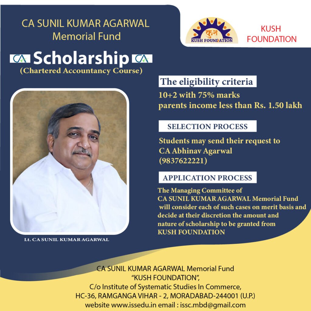 - Name of Scholarship : CA Sunil Kumar Agarwal Memorial Fund