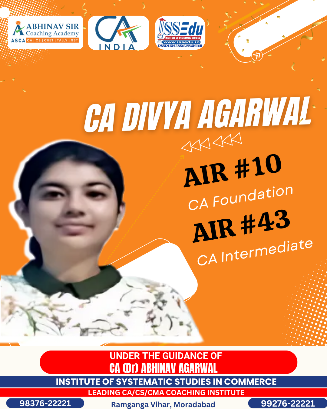 - Established in 2002, Abhinavsirca (A Unit of ISSEDU, Institute Of Systematic Studies) , under the guidance of CA Dr. Abhinav Agrawal, M. Com.,FCA, DISA,MBA,LL.B.,Ph.D (All India 16th rank holder) is one of the highest result oriented coaching Institute providing quality education in all papers for all competitive & Professional Courses like CA /CS /CMA / CLAT/ CUET / Tally/GST / Foreign Courses / University Courses etc.